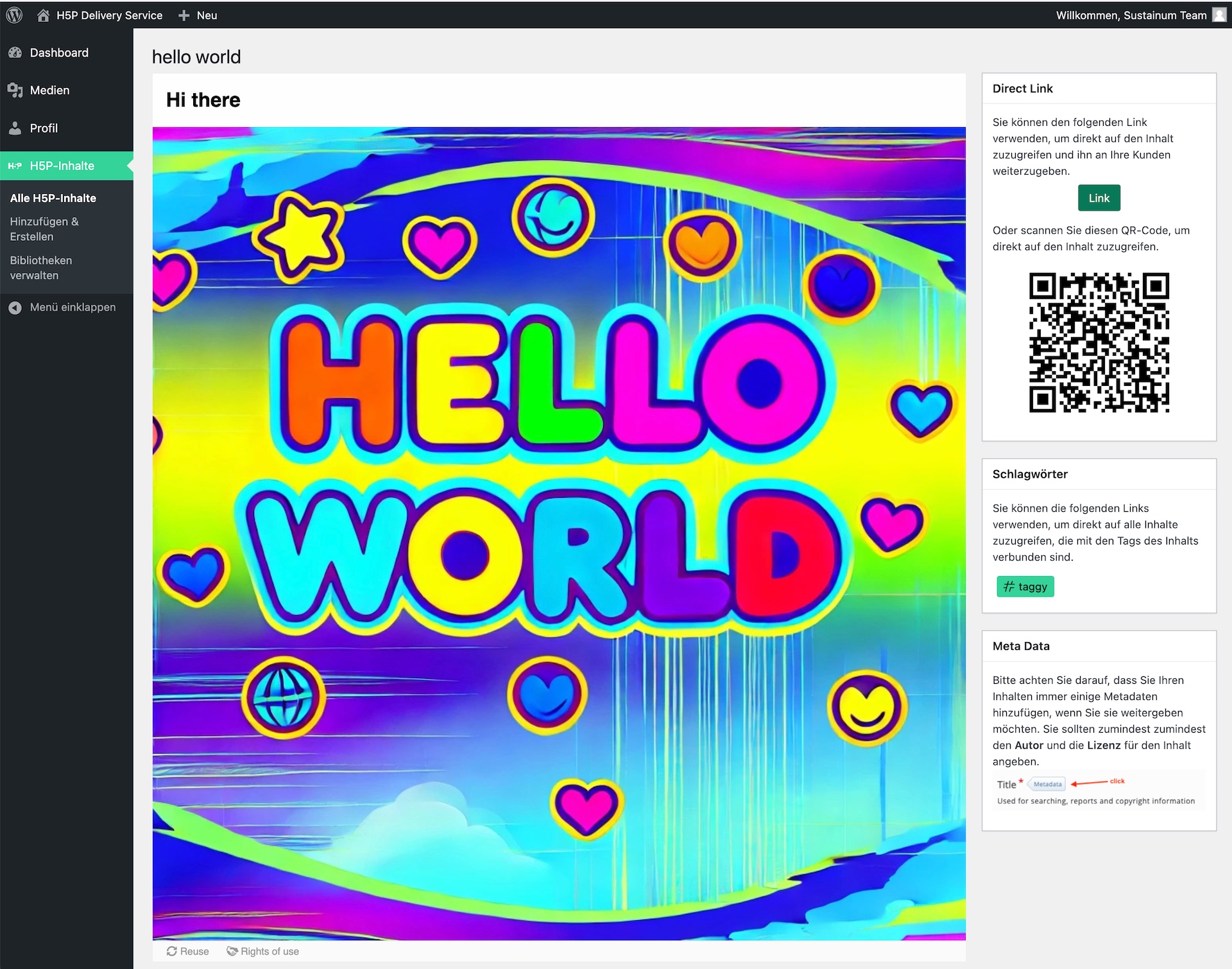 Una versión personalizada de Wordpress que permite a los profesores alojar y distribuir fácilmente sus contenidos a los alumnos. Cada vez que se crea un nuevo contenido H5P, se crea al mismo tiempo una entrada de blog correspondiente, que puede distribuirse a los alumnos. Si a un contenido H5P también se le asigna una etiqueta, también se pueden mostrar varios contenidos con la misma etiqueta en una página de resumen. Esto permite a los profesores reunir varias unidades de aprendizaje para un grupo o un curso con una solución sencilla.
